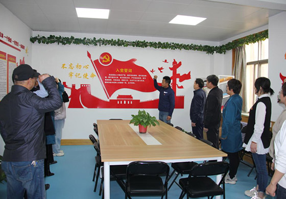 在四楼党员活动室,党员代表窦小楠领学了中国共产党入党誓词的演变,从红军时期、抗日战争时期、解放战争时期、新中国成立初期以及十二大以后,虽然不同历史时期入党誓词有过数次修改,“纪律”二字却始终是“不变”的那一部分,始终被强调的“纪律”二字则反映了中国共产党不变的初心以及不随时移世易而动摇的坚守。