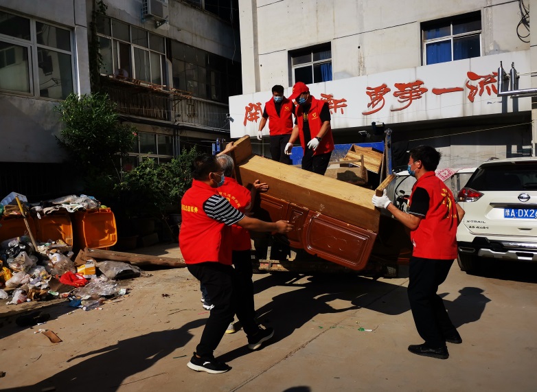 暴雨过后,广测社区内所辖的2个小区生活垃圾无法及时处理,造成堆积,天气炎热,产生异味,对居民日常生活和出行造成影响。河南省基础地理信息中心志愿者在中心党委书记的带领下,带上铁锨等清扫工具奔赴楼院开展垃圾清除工作。汗流浃背的志愿者们密切合作,相互配合,发扬不怕脏,不怕苦,不怕累的奉献精神,清理小区堆放的垃圾杂物,帮助受灾住户搬运受潮的家具,清运垃圾,大家经过一下午共同努力下,小区居民垃圾进行了彻底清除,全力帮助受灾住户重整家园,维护居民清洁卫生的生活环境,得到社区所在居民的一致称赞,不住道谢。