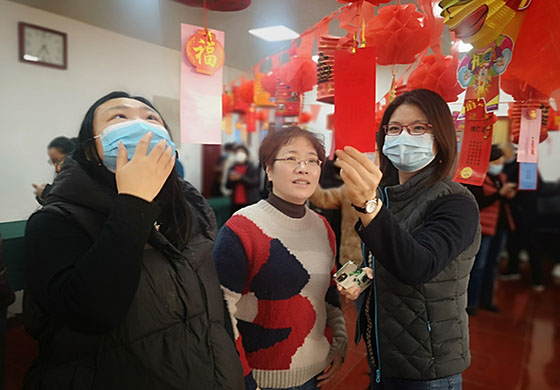 活动现场气氛热烈,欢乐融融。现场播放着“欢欢喜喜闹元宵”的音乐,屏幕上播放着元宵节的由来及传统习俗视频,以此加深对中华传统节日的认识,感受传统文化的博大精深。一串串的红色灯笼上悬挂着灯谜,谜语内容丰富,兼具知识性与趣味性,内容包含了党史学习教育、能力作风建设年、精神文明建设以及文学知识、生活知识等,让人们既能享受到传统文化带来的欢乐,又能受到思想教育的熏陶。现场还开展了DIY制作灯笼活动,吸引了不少职工积极参与。