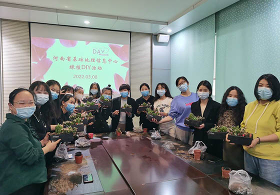为丰富职工业余文化生活,增强职工工作积极性和创造性,3月8日,河南省基础地理信息中心组织90余名干部职开展绿植DIY活动。