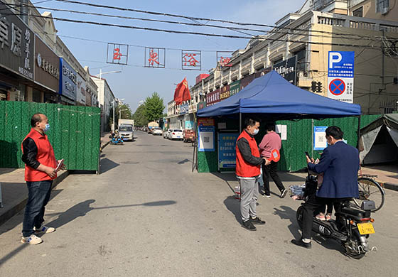 濮阳项目部驻地是典型的老旧小区,道路狭窄、人员密集、管理松散。疫情防控期间,社区将部分道路路口进行封闭,只保留两个出入口,采取出入扫码的管控政策。项目部党员干部与社区工作者一道在出入口值班,提醒进出车辆、居民扫码亮码、测量体温,并向居民解释相关注意事项,协助做好社区居民服务保障,尽己所能把这里的防控工作做到严之又严、细之又细。