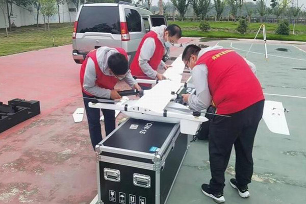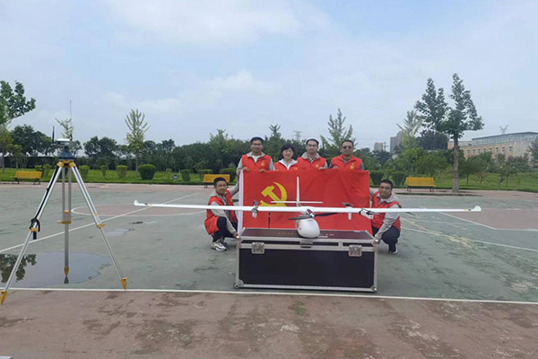 10点07分,应急分队抵达郑州市尖岗水库起降点,有序开展无人机组装、搭建地面卫星定位基准站,并结合水库范围开展飞行航线规划工作。