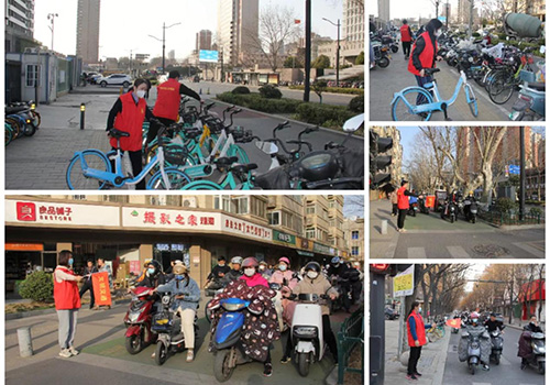 活动中,志愿者来到黄河路花园路地铁口,针对地铁口周边非机动车车辆停放不规范、挤占人行道、盲道的情况,对共享单车进行了有序摆放。志愿者一边将乱停乱放的共享单车一辆辆搬运到规定的位置并摆放整齐,一边向周边居民宣传“绿色出行,文明共享”的理念,在共享单车方便人们出行的同时,应该合理、规范使用,自觉爱护、维护共享单车,共同维护我们的家园。