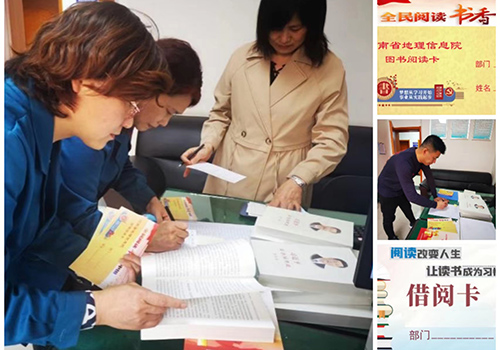 河南省地理信息院向干部职工发放了图书阅读卡、留存借阅卡,号召大家充分利用工作之余,以单位、家庭为阵地开展阅读活动,记载阅读书目。一是开展主题阅读。对习近平新时代中国特色社会主义思想主题读物深度研读,学深立场观点方法,学懂道理学理哲理,学出信仰信心,真正用先进思想武装头脑、指导实践、推动工作。二是开展专题阅读。红色精神和业务知识相关书籍学习,进一步传承赓续红色血脉,提高业务能力。把阅读学习与党支部“三会一课”“主题党日”活动等结合起来,开展经典诵读、心得体会交流、读书分享等形式多样的读书活动。