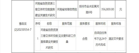 近日,从河南省政府采购网获悉,河南省地理信息院成功中标2023年度河南省自然资源科研项目“河南省自然资源三维立体时空数据库建设关键技术研究”。