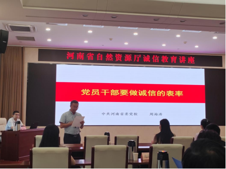 为进一步加强精神文明建设,提高全体干部职工诚信教育道德素养,9月14日,河南省地理信息院组织党员干部参加省自然资源厅举办的诚信教育知识讲座。