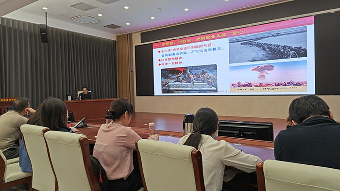 华北水利水电大学法学院院长刘华涛作为讲座的特邀教授,以“学思想爱岗敬业 担使命尽职尽责”为题为大家进行了职业道德专题授课。刘华涛教授从学思想、讲政治,强服务、重法治,严律己、锻心态三个方面,全面系统深入学习习近平总书记重要讲话精神和党的二十大报告,并通过列举一系列职业道德的典范,让大家更进一步认识到职业道德的丰富内涵和重要意义,引导党员干部牢固树立爱岗敬业、忠于职守的优良作风,将职业道德内化于心、外化于行,始终信守对党和人民的承诺,坚定理想信念,永葆忠诚本色。