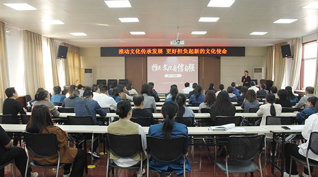 宣讲活动邀请了河南省青年理论宣讲专家、河南财经政法大学张晓静老师为主讲人。张晓静以详实的数据、生动的故事,通过“以中华优秀传统文化培根铸魂”“以弘扬革命文化凝心聚力”“以发展社会主义先进文化固本强基”三个维度,深入阐述了“推进文化自立自强,铸就社会主义文化新辉煌”的理论逻辑、历史逻辑和现实逻辑,引导广大党员、干部自觉肩负起继续推动文化繁荣、建设文化强国、建设中华民族现代文明这一新的文化使命。