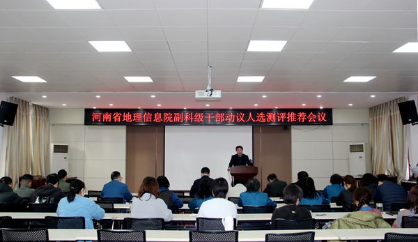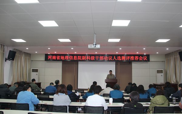 近日,河南省地理信息院组织召开副科级干部动议人选测评推荐会,院领导班子成员、在郑中层以上干部、群众代表30余人参加投票推荐,会议由院人事教育科科长主持。
