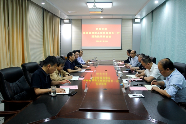 5月11日上午,江苏省测绘工程院党委书记、院长钱郭锋一行到省地理信息院调研座谈,院党委委员、副院长尚永福,院长助理金子鑫及地理信息院相关部门负责人参加座谈会。