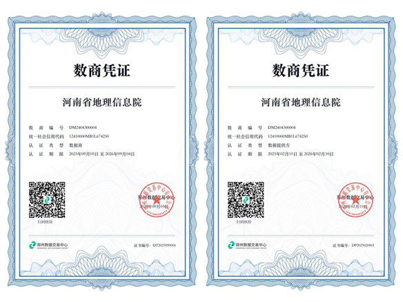 近日,河南省地理信息院顺利通过郑州数据交易中心数商资格认证,被授予“数据提供商”和“数据商”证书。这一认证标志着河南省地理信息院在地理信息数据服务、数据库建设、更新和维护以及自然资源数据汇聚和国土空间基础信息平台的建设、应用、服务等方面的专业能力获得数据要素市场的权威认可。