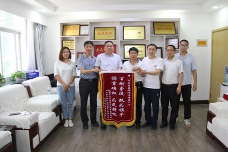 近日,正阳县农业局副局长杨鑫一行专程来到河南省基础地理信息中心,对中心正阳县农村土地承包经营权确权登记颁证工作取得的成绩表示感谢并赠送锦旗。