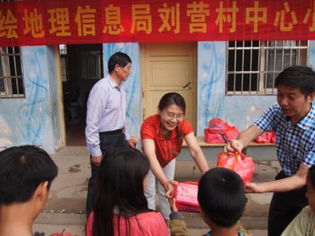 2017年5月24日,河南省基础地理信息中心一行在精准扶贫入户调研期间恰逢“六一”儿童节前夕。为深入推进精准扶贫工作,局直属机关党委专职副书记周群、中心党委书记程勉志来到刘营村的小学、幼儿园开展“关心关爱留守儿童 着眼未来健康成长”献爱心慰问活动,同时与驻村第一书记、村干部一起察看扶贫项目进度,共商扶贫推进措施。慰问现场,周群书记和程勉志书记为24名留守儿童送去节日的礼物和祝福,并将书籍、文具现场分发给孩子们。