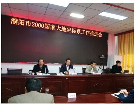 2018年3月14日上午,河南省基础地理信息中心熊长喜主任、付治河副主任一行5人到濮阳市国土资源局参加濮阳市2000国家大地坐标系转换工作推进会。市局刘文俊副局长、陈江峰副局长,以及各县(区)国土资源局、局属各单位、相关科室负责人共50余人参加了会议。