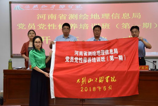 在开班仪式上,河南省测绘地理信息局党委委员、副局长宋新龙代表局党委作了动员讲话,并对参训学员提出三点要求:一是统一思想,深刻领会教育培训的重要意义;二是把握主题,全面提升综合能力素质;三是严格纪律,确保教育培训各项任务圆满完成。大别山干部学院教务部部长汪震雷代表学院致辞并为培训班授班旗。