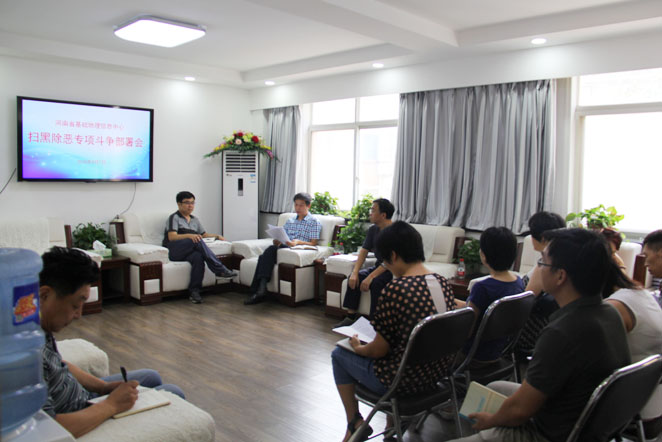 2018年8月7日下午,河南省基础地理信息中心在四楼会议室召开了扫黑除恶专项斗争部署会,中心党委书记程勉志主持会议并讲话,全体中层干部参加了会议。会议传达了省测绘地理信息局开展扫黑除恶专项斗争工作会议精神,同时对中心开展扫黑除恶专项斗争工作进行深入动员部署。