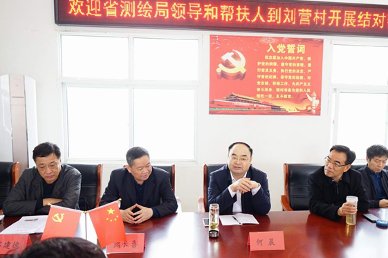 3月29日,中心帮扶责任人陪同河南省测绘地理信息局党委委员、纪委书记何晨到固始县李店镇刘营村开展结对帮扶工作并召开座谈会,固始县县委常委、副县长赵立明、李店镇党委书记张宝参加座谈会,局人事处、局质监站等有关人员也参加了座谈会。