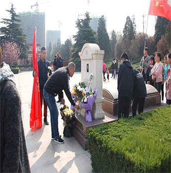 在吉鸿昌将军墓碑前,中心人事教育科科长介绍他的生平和光辉事迹,使大家进一步了解了吉鸿昌将军成长经历和革命历程。在中心党委书记的带领下,在场党员行三鞠躬表达对吉鸿昌将军的敬意,墓碑前敬献鲜花,瞻仰革命烈士的丰碑,追思将军的崇高风范。大家纷纷表示被吉鸿昌将军大无畏革命精神和强烈的爱国主义情怀感染,更加珍惜今天美好生活的来之不易。