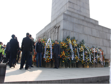 在郑州市烈士纪念碑前,全体同志排列整齐,在庄严肃穆中,敬献花篮,瞻仰革命烈士的丰碑,追思先辈们的崇高风范。在革命先烈的见证下,全体人员神情庄重,坚定地举起右拳,在中心党委书记的领誓下朗声重温入党誓词,牢记初心使命。简单的缅怀仪式,饱含着对烈士们的无限的崇敬与悼念。后又在历年重大悼念活动图片展前驻足,感受社会各界对烈士的敬仰之情。