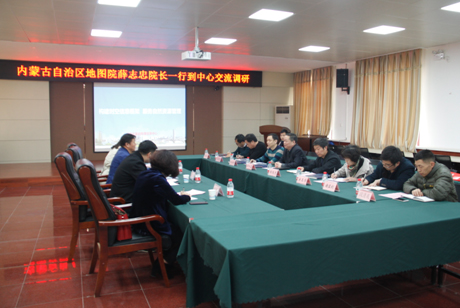 2019年4月11日,内蒙古自治区地图院薛志忠院长带领有关科室负责人一行四人来到地信中心进行工作调研。双方在四楼会议室召开了调研交流会,中心领导班子及有关科室负责人参加了会议。